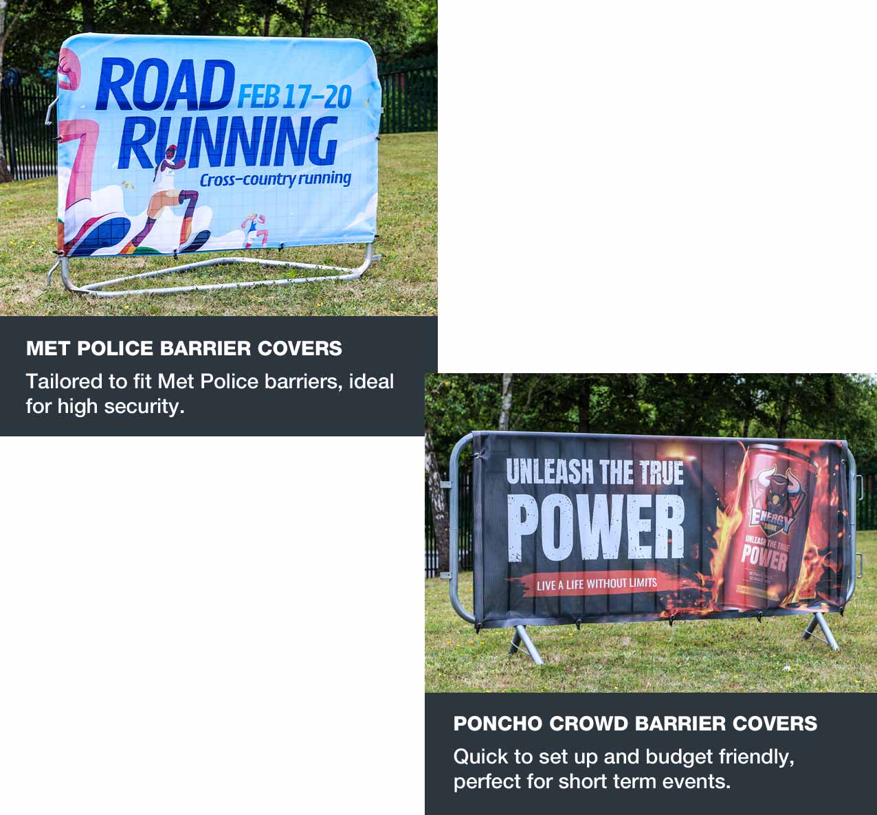 Our Crowd Barrier Covers turn standard barriers in to high impact advertising spaces, combining functionality with brand visibility.
